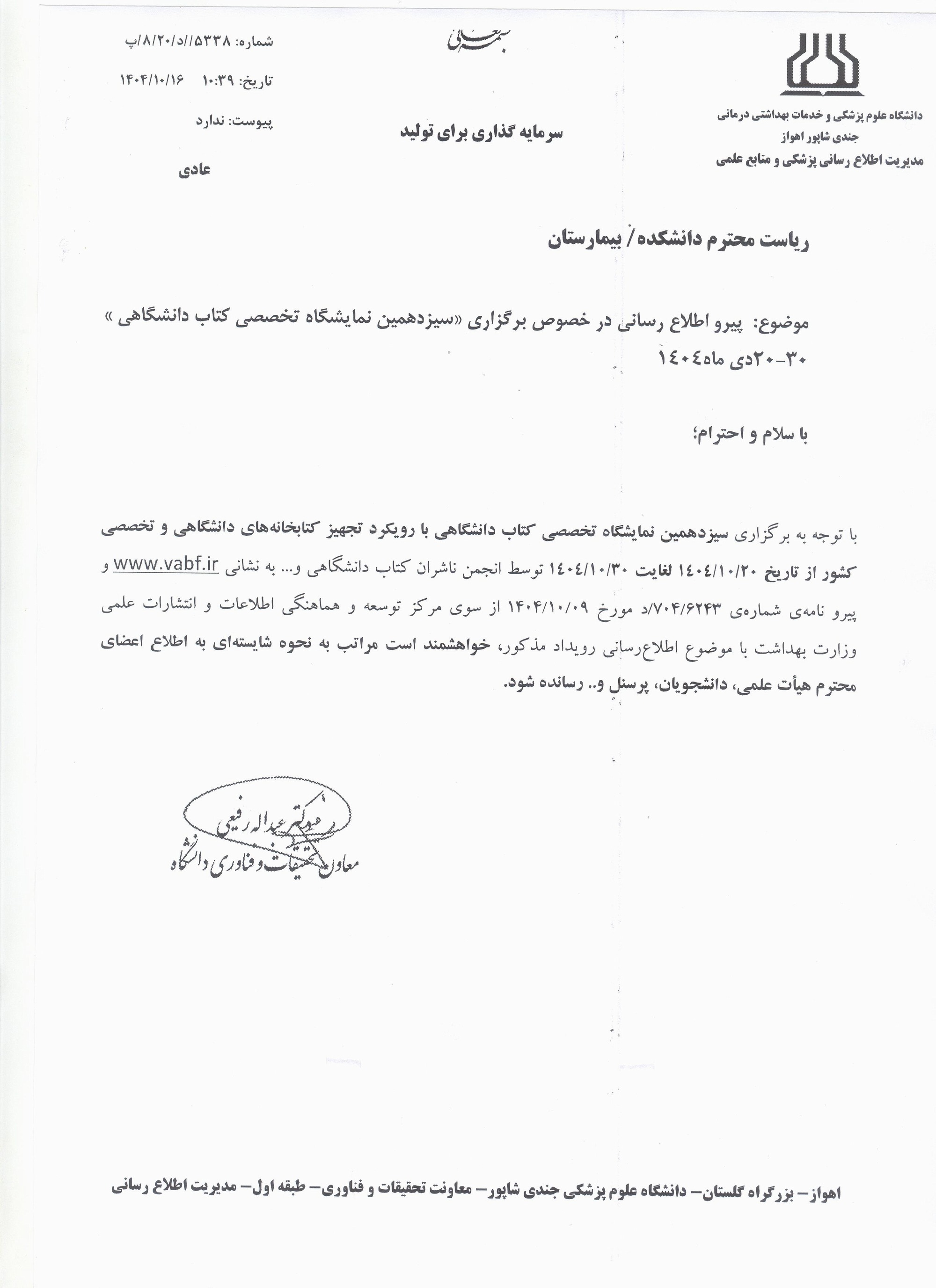 برگزاری سیزدهین نمایشگاه تخصصی بین المللی کتاب دانشگاهی ۳۰-۲۰ دی ۱۴۰۴